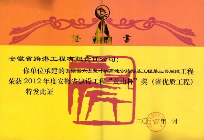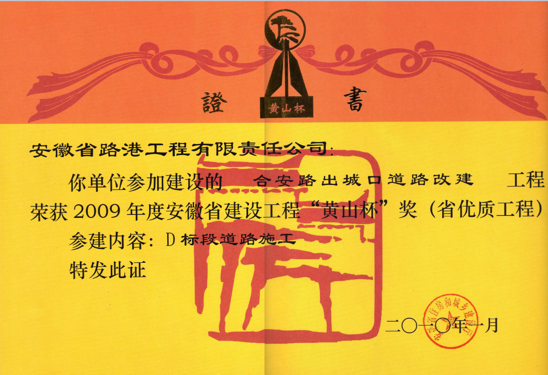 安徽省建設工程“黃山杯”獎(省優質工程)