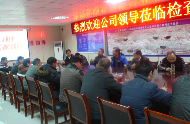 1月27日下午,公司董事長李振標在黨委副書記馬斌,副總經理汪崇龍、生產管理部經理程正旺等同志的陪同下赴G206東流至堯渡段建設工程02標項目部進行調研。
