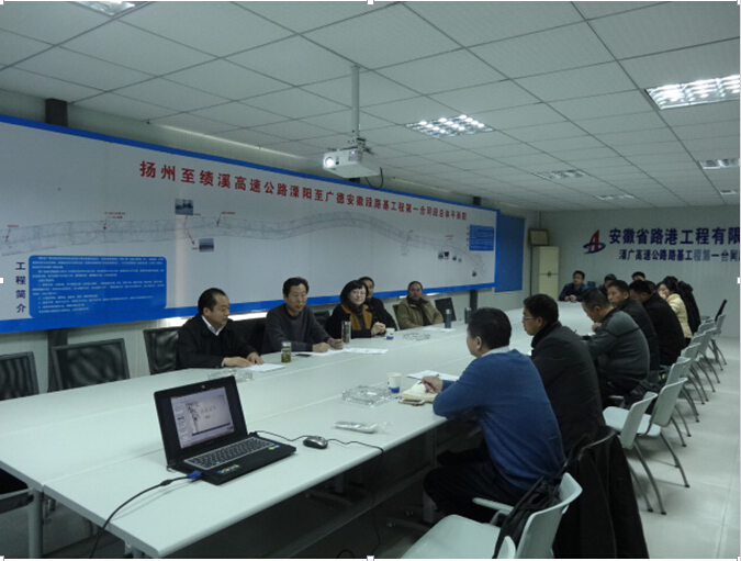 2月12日上午,公司董事長李振標在黨委副書記馬斌、副總經理汪崇龍的陪同下,赴溧廣高速01標調研。項目辦主任徐靜、安徽高速監理公司副總經理楊冬林應邀參加了調研會議。