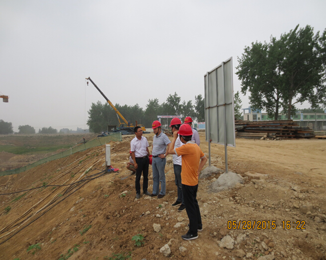 5月28日下午公司副總經理袁民、人力資源部經理王永亮、安全管理部副經理石無勇一行蒞臨楊橋船閘擴建工程檢查指導工作。