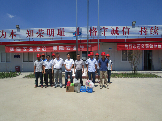 馬書記一行來到項目部后,首先就將綠豆、毛巾、香皂、花露水等防暑降溫物品分發到項目部員工的手中,將送清涼活動落到實處。在察看全線施工現場后,馬書記一行與項目部的技術管理人員一同召開了座談會。