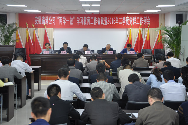 4月29日上午,安徽路港公司召開“兩學一做”學習教育工作會議暨二季度黨群工作例會。公司領導班子成員、公司機關部門正職及以上人員、公司機關全體黨員、各黨支部書記、子分公司黨政負責人參加“兩學一做”學習教育工作會議,公司黨委副書記馬斌主持會議。
