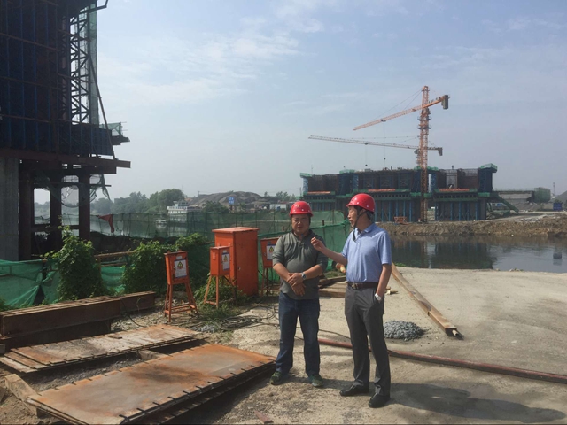 5月31日上午,公司董事長李振標在項目部負責人的陪同下到郎溪路高架項目部檢查指導工作。