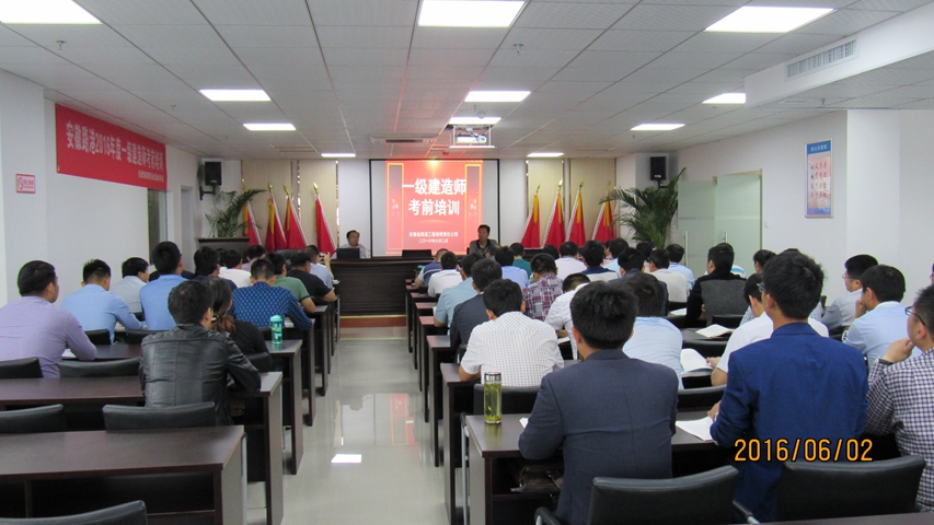 為滿足公司生產經營需要,提升工程技術人員綜合素質,6月2日,安徽路港舉辦2016年度一級建造師考前培訓,來自公司生產、經營和管理等戰線上的共80位同事參加了培訓。在培訓開班儀式上,公司董事長李振標親臨指導,并提出要求。