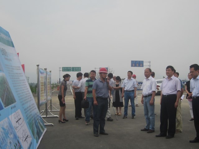 6月15日上午,巢湖市人大常委會主任周恩平、副主任李光華等一行蒞臨S316裕溪河特大橋調研,巢湖市副市長、市委常委夏群山、巢湖市交通局局長徐保華及居巢經開區相關負責人等陪同調研。