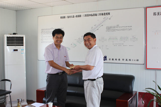 6月23日上午,集團公司黨委委員、副總經理霍向東、發展規劃部主任黃代一行在安徽路港公司董事長李振標、總經理朱忠明、黨委副書記馬斌的陪同下,蒞臨安徽路港合肥市郎溪路高架項目部調研、慰問困難黨員并為項目部黨員、入黨積極分子和技術骨干上了一堂生動的黨課。