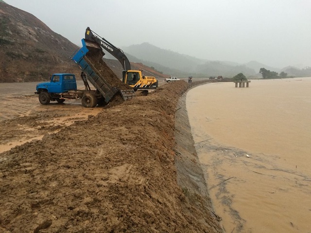 2016年7月3號凌晨1點氣象局預警信號由橙色上升為紅色,未來降水量將達到300mm。在強降雨的催使下,整個水位急劇上升,頻頻接近警戒線。防汛領導小組立即啟動應急預案,項目經理迅速帶領項目人員奔赴抗洪前線,全然不顧狂風暴雨,忘記危險,全力致身于搶險抗洪現場,晝夜不眠,對地勢比較低洼、水流域比較大、容易發生潰堤的地方,對堤壩進行了維護、加固。經過晝夜不眠的奮力抗戰,有效地控制了局面,將項目財產損失降到了最低。