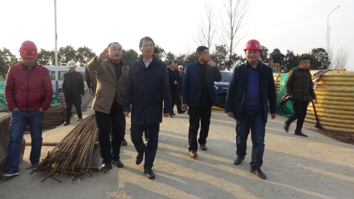 2月12日下午,六安市市長畢小彬一行蒞臨安徽路港六安市文華路橋項目部檢查指導工作.