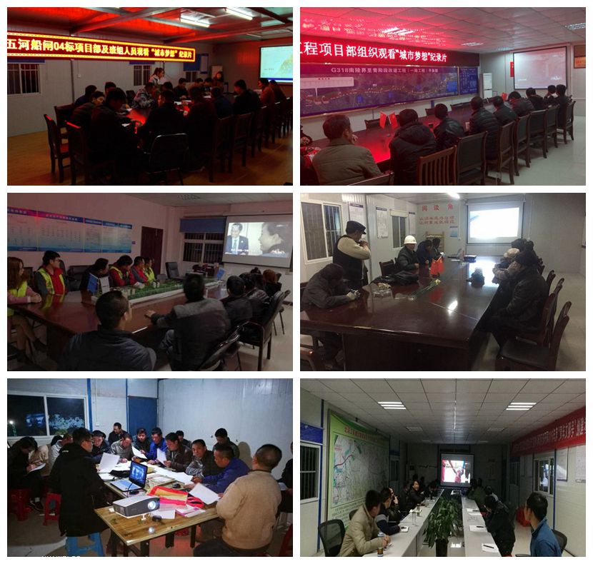 近日,安徽路港各項目部組織各施工班組農民工集中觀看《城市夢想》節目,項目部領導班子和技術管理人員也參與觀看。