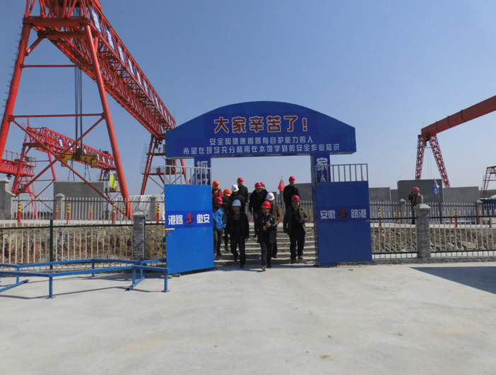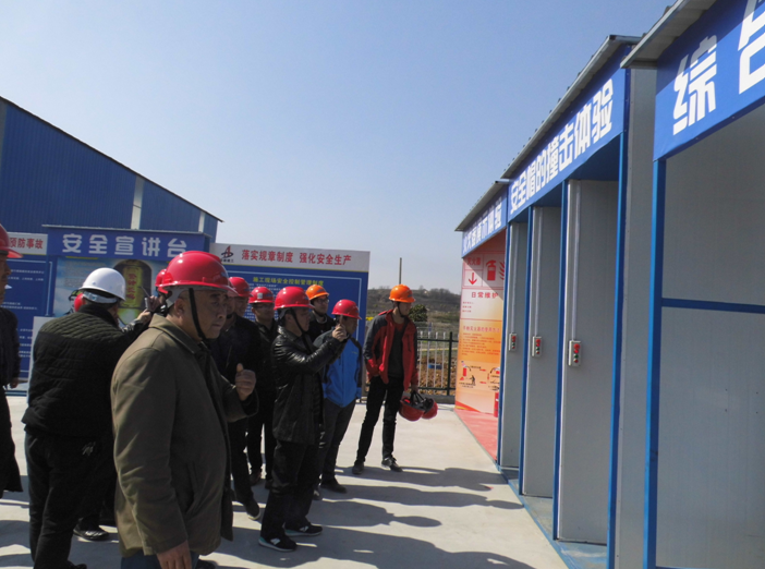 代表團一行先后參觀了項目預制場、鋼筋加工廠、混凝土拌合站、安全體驗館,合寧預制標項目負責人對各項工作的施工控制點、現場施工情況進行了詳細介紹,并和大家在安全體驗館體驗了各項安全防護措施。