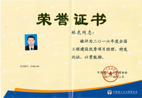 近日,由中國施工企業管理協會評選的2016年度“全國優秀施工企業”、“全國工程建設優秀項目經理”結果揭曉,安徽路港憑借優秀的施工業績再次榮獲“全國優秀施工企業”榮譽,項目經理林虎榮獲“全國工程建設優秀項目經理” 稱號。
