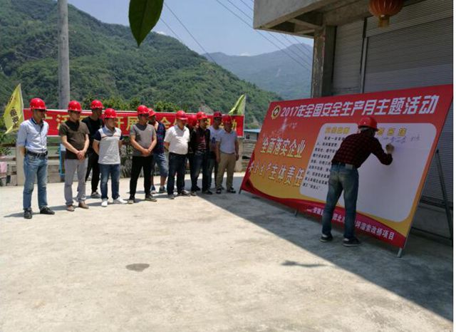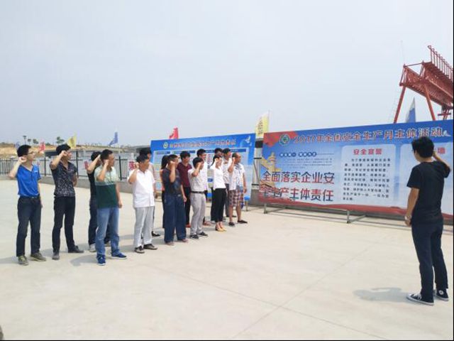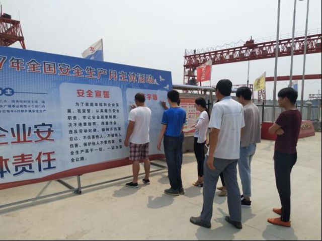 我是一名安徽建工人,我鄭重宣誓:時刻注意安全,遵守安全法規。履行安全職責,提高安全技能。杜絕三違現象,保證四不傷害。強化紅線意識,促進安全發展。為了家人幸福、企業發展,誓做建工“安全人”。錚錚誓言響徹云霄,筆尖揮斥千金承諾。6月1日至2日,安徽路港公司機關及所屬各單位、項目部莊嚴舉行了2017年“安全生產月”宣誓簽名儀式,拉開了今年以“全面落實企業安全生產主體責任”為主題的“安全生產月”系列活動序幕。