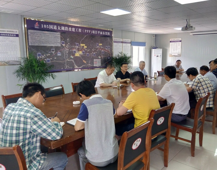 6月6日,安徽路港公司紀委書記、工會主席干戈,總經理助理、招標辦主任鄭國新和紀委副書記王承民一行赴國道105太湖段改建工程項目部調研。