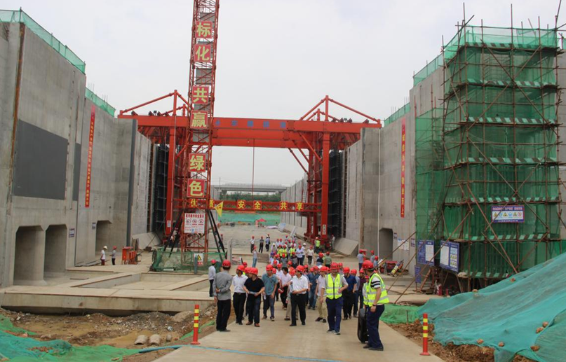 6月8日上午,安徽省港航投資集團觀摩團一行90余人來到安徽路港南坪船閘項目部進行現場觀摩,安徽路港公司副總經理、總工程師張瓊,安全管理部經理凌必勝,總工辦主任余夢陪同。