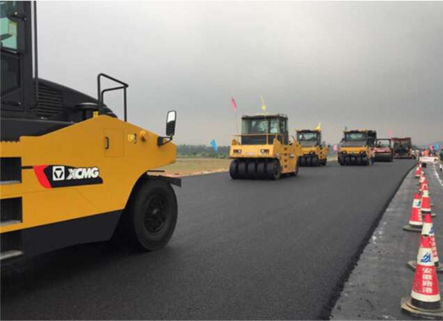 6月15日上午八時整,施工現場彩旗飄揚,機器轟鳴,滁馬高速路面02標率先進行了瀝青中面層試驗段攤鋪。
