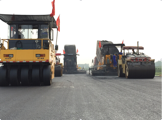 蚌寧連接線路面02標完成瀝青混凝土下面層試驗段攤鋪