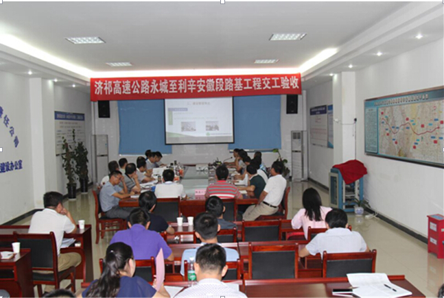 8月19日上午,在安徽省亳州市渦陽縣建設辦一樓會議室召開濟祁高速公路永城至利辛安徽段路基工程交工驗收會議。安徽交通控股集團公路建管公司副總經理蘇新國、質監局副處長王樂遠等領導到場參加會議。會上,設計單位、施工單位(路基07標)、監理(路基一辦)、檢測單位代表分別進行工程總結發言。