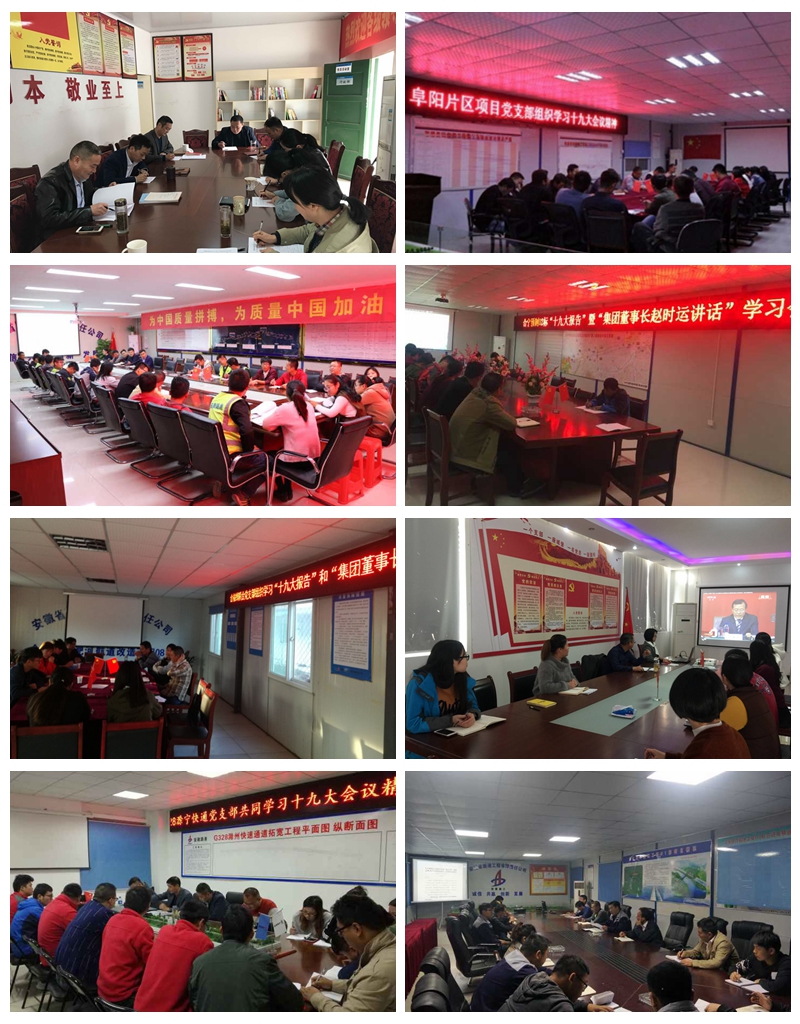 所屬各支部快速響應,通過制作宣傳展板、設置學習專欄、召開專題學習座談會、觀看專題片等多種形式,重點學習了十九大報告、十九大修改通過的《中國共產黨章程》、《省委書記李錦斌在省委常委擴大會議上講話》、《集團董事長、黨委書記趙時運在嚴格落實全面從嚴治黨“兩個責任”推進會暨2017年四季度黨群工作例會上的講話》等內容,把黨的十九大精神傳達到施工一線、傳達到每名黨員,引導廣大黨員干部深入學習領會十九大精神的深刻內涵和精神實質,營造了學習貫徹十九大精神的濃厚氛圍。