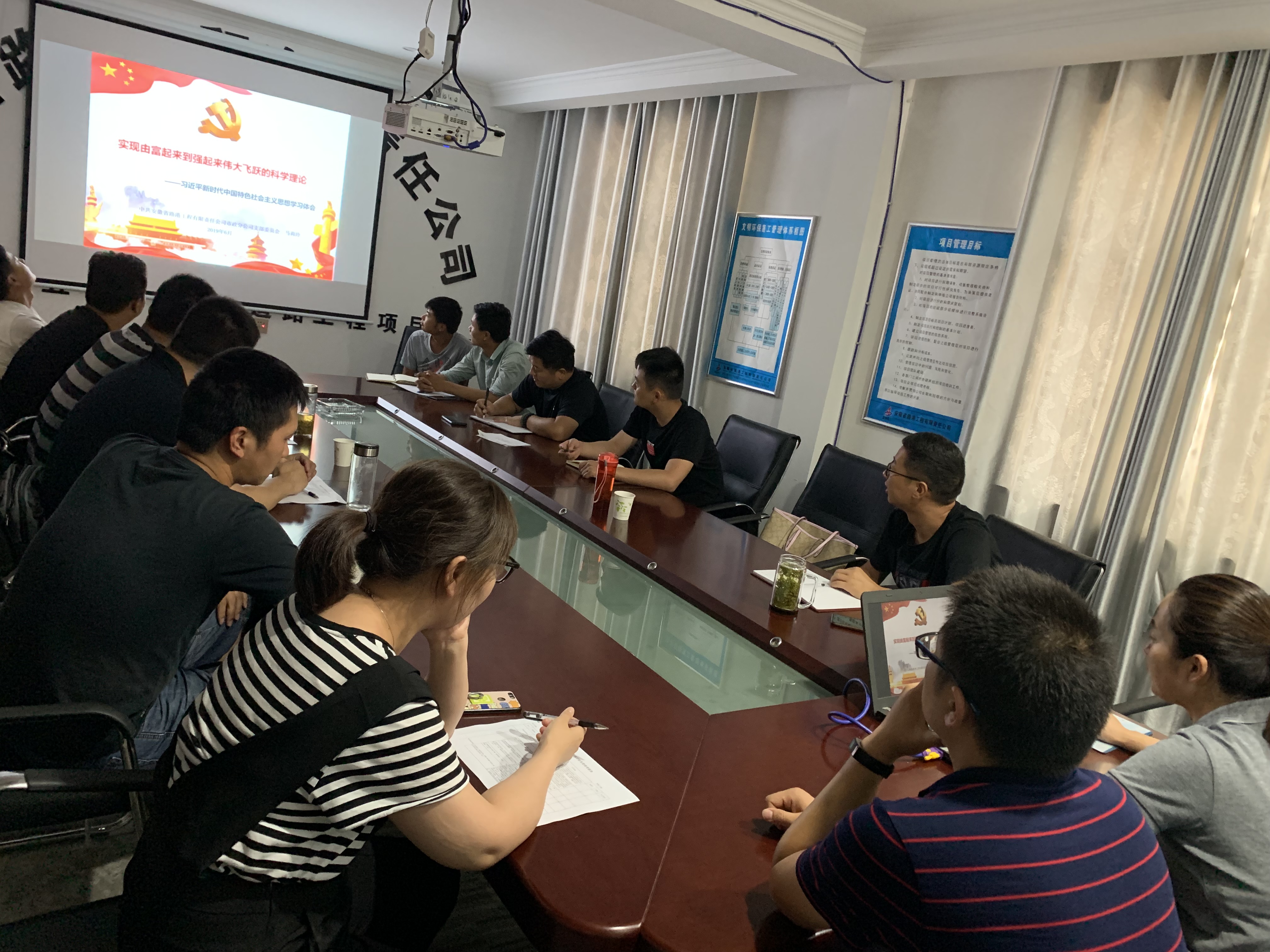 市政分公司黨支部開展“不忘初心,牢記使命”主題黨日活動,集中學習《習近平新時代中國特色社會主義學習綱要》,支部副書記馬莉玲赴阜合產業園項目部講黨課。