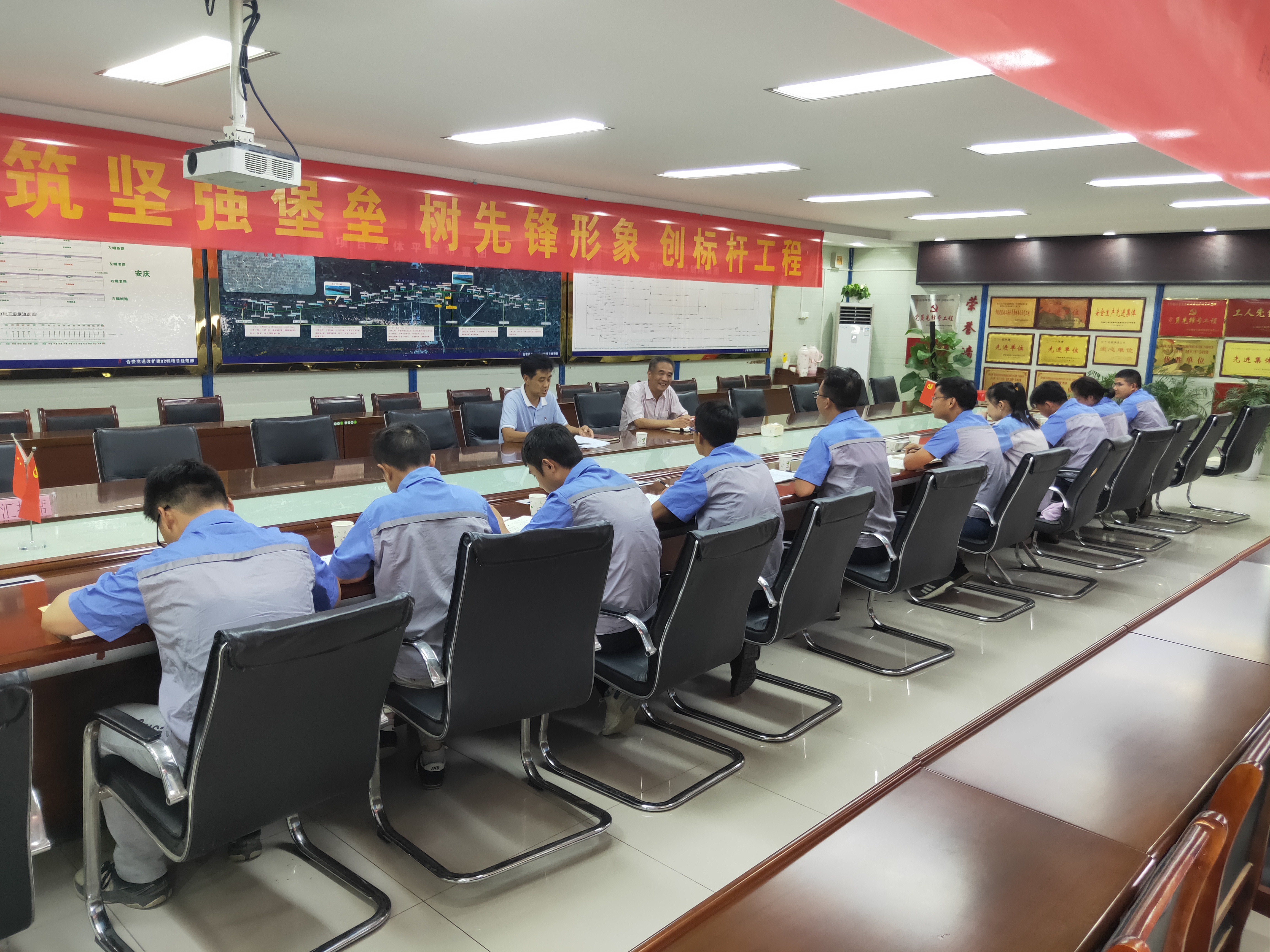 霍總深入項目施工現場,聽取項目負責人關于工程當前進展情況和存在問題的匯報并提出指導性意見。調研座談會上,霍總與項目部職工親切交流,詢問了解項目黨支部“不忘初心、牢記使命”主題教育開展、意識形態領域存在問題整改、與會黨員“兩書一章”學習掌握情況,就集團黨委《“去行政化官僚化傾向”緊急行動方案》進行深入解讀并提出具體工作要求。