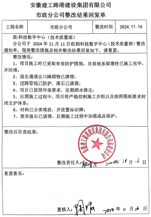 科技數字中心(技術質量部)對照施工方案、危大工程方案實施過程檢查表專項檢查了滁合支線現澆支架施工、S306馬店大橋和青弋江大道水陽江特大橋掛籃懸澆施工,并梳理總結實施過程檢查報告,線上通報。季度專項檢查同步抽檢深基坑開挖支護、梁板吊裝、鋼圍堰等危大工程實施。