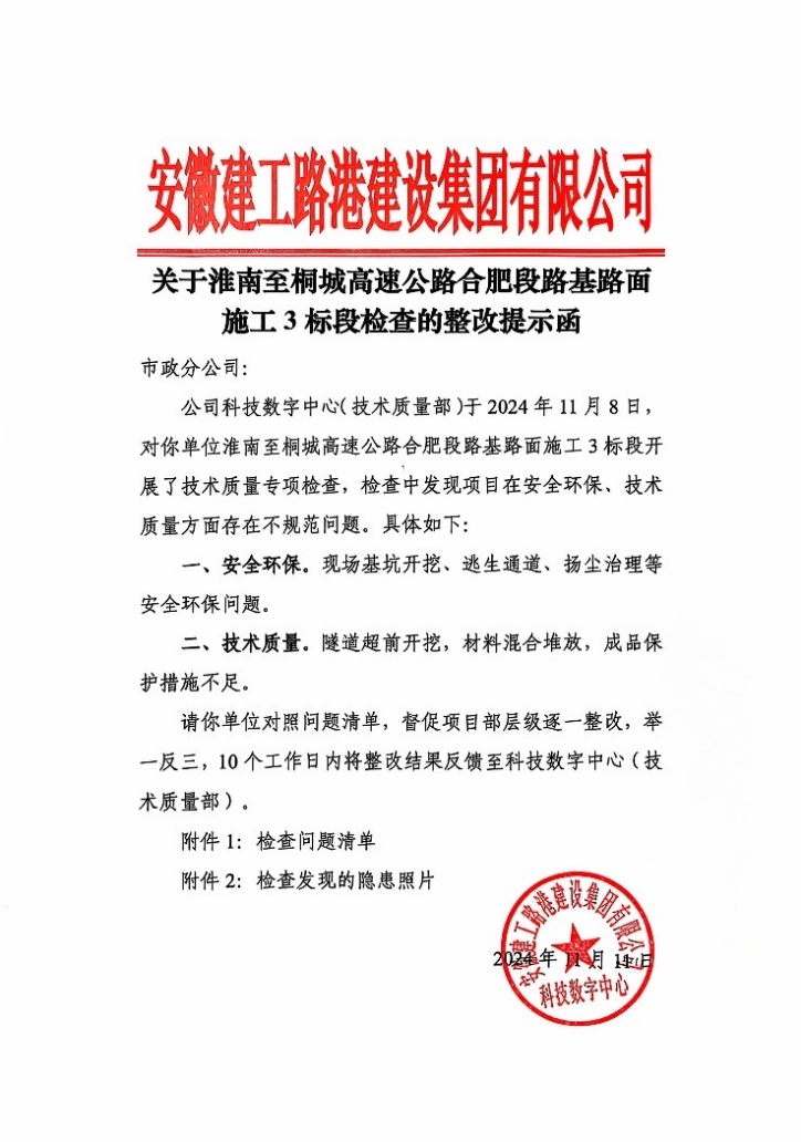 公司安全管理部及各分公司安全管理部門參照季度更新的在建待建危大工程清單,重點檢查各項危大工程實施過程并記錄,根據檢查情況以聯系單、提示函反饋檢查意見,項目部在規定時間內完成整改回復。