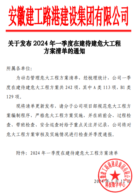 季度更新在建待建危大工程清單的通知