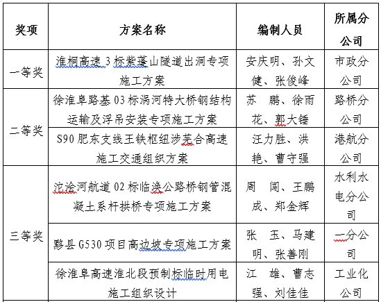 組織開展危大工程方案評選,結合各分公司項目部生產特點,梳理了22項備選方案,共有17項方案參加評選。評選邀請專家對方案的技術可行性、安全保障性、經濟合理性以及內容全面性等多個維度進行了綜合評審,其中市政分公司淮桐高速03標“紫蓬山隧道出洞專項施工方案”獲一等獎。公司對獲獎方案編制人員進行激勵表彰,鼓勵技術人員再接再厲,不斷提升個人專業能力,為公司危大工程精細化管理水平的提高保駕護航。