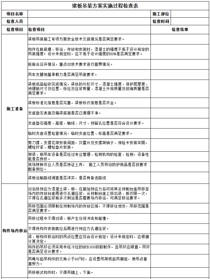 編制危大工程實施檢查表