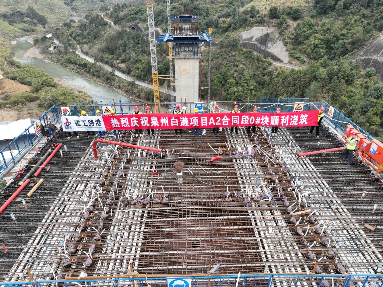 2月20日11時10分,歷經23個小時的連續施工,隨著最后一方混凝土泵送入模,泉州白瀨項目劍溪大橋6#橋墩0#塊順利澆筑完成,這也是全線首個澆筑完成的0#塊,標志著項目橋梁工程建設正式進入上部結構施工階段。