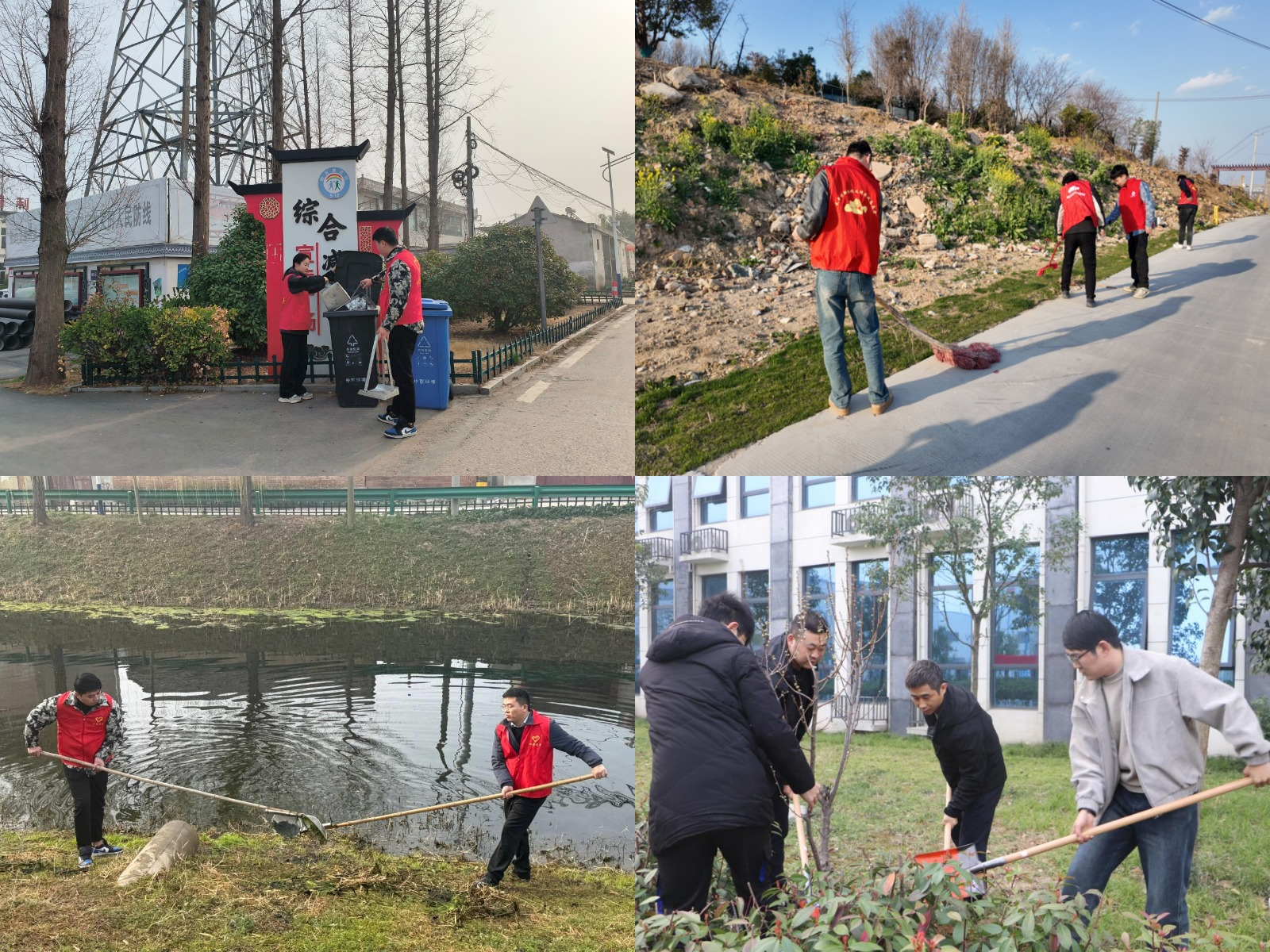 工程科技分公司團支部組織青年志愿者在蚌埠李樓鄉對村內主干道和公共區域進行垃圾清掃、雜草清理;宣傳環保知識,倡導大家共同維護環境衛生,共同建設美麗家園;在項目駐地開展義務植樹,栽種枇杷樹、桃樹等喬木,并建立樹木養護責任制,定期開展成活率檢查。