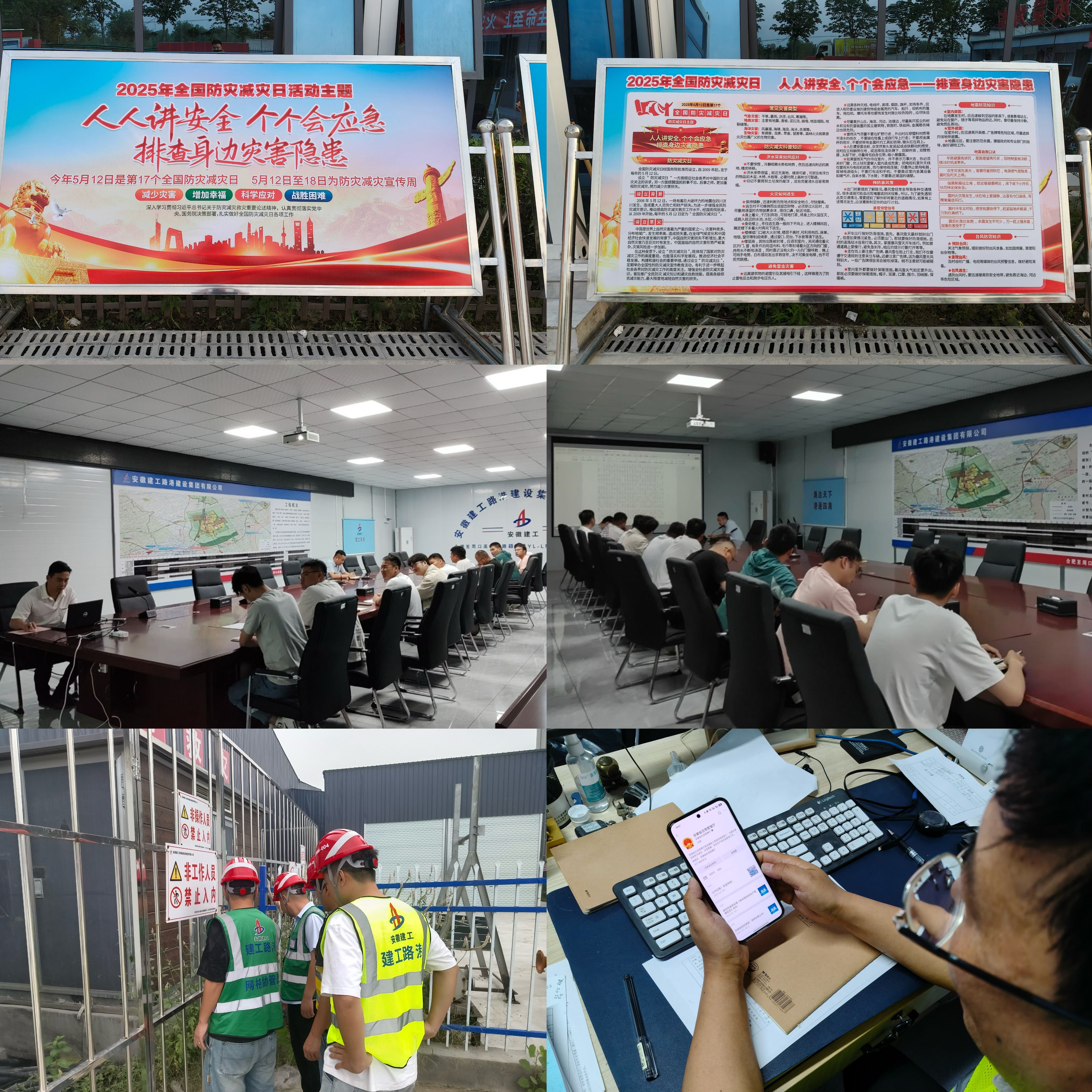 為確保此次活動有序推進、取得實效,項目部成立專項籌備小組,統籌安排各項工作。一是組織開展集中學習與演練。項目部組織全體管理人員在會議室集中觀看防災減災科普視頻、公益廣告,深入學習相關主題文件精神,并通過現場演練等方式提升員工應對突發災害的實戰能力。二是強化宣傳氛圍。在辦公區域設置宣傳展板,廣泛普及防災減災知識,營造出濃厚的安全生產氛圍,幫助員工持續積累實用安全常識。三是深入開展隱患排查整治。聚焦施工現場、場站、宿舍等重點區域,項目部組織專項風險隱患排查行動,做到發現問題早、整改及時,切實防范各類災害風險。