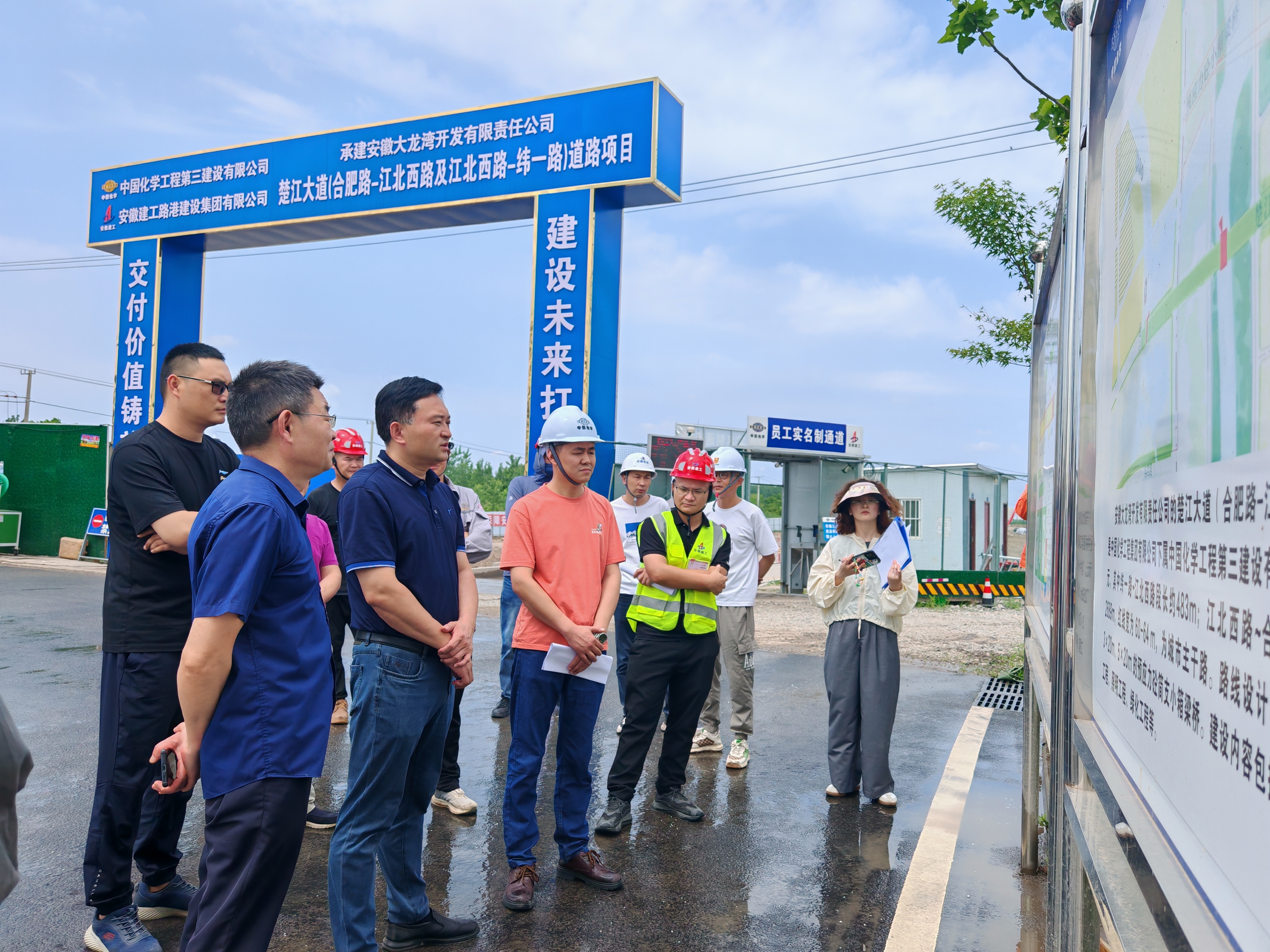 近日,皖江江北新興產業集中區黨工委委員、管委會副主任王宏偉一行赴建工路港公司承建的楚江大道項目一期、二期標段開展實地調研。