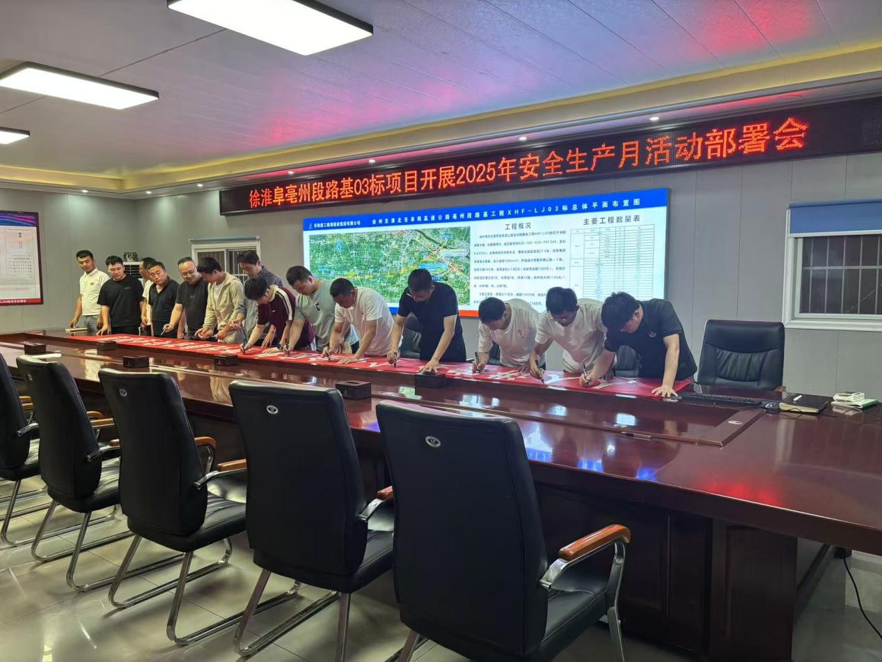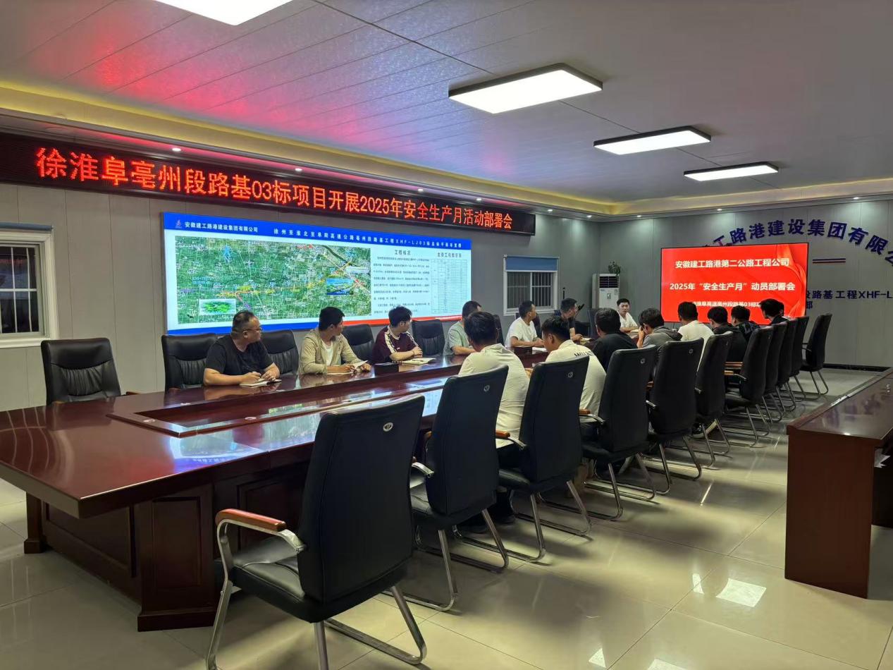 5月30日,徐淮阜亳州段路基03標項目召開專題會議,正式啟動以“人人講安全 個個會應急——查找身邊安全隱患”為主題的安全生產月活動。
