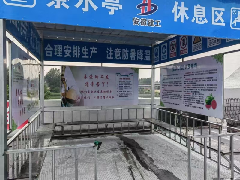 面對動輒突破40攝氏度的“炙烤模式”,項目部科學部署、精準施策,打響了一場與烈日爭分奪秒的硬仗。一是現場足量供應鹽汽水、藿香正氣水等防暑降溫物資。二是搭設多處遮陽棚供作業人員輪換休息,專職安全員全程巡查,嚴防中暑。三是靈活調整作業時間,采取“抓兩頭、歇中間”策略,確保工程高效推進。